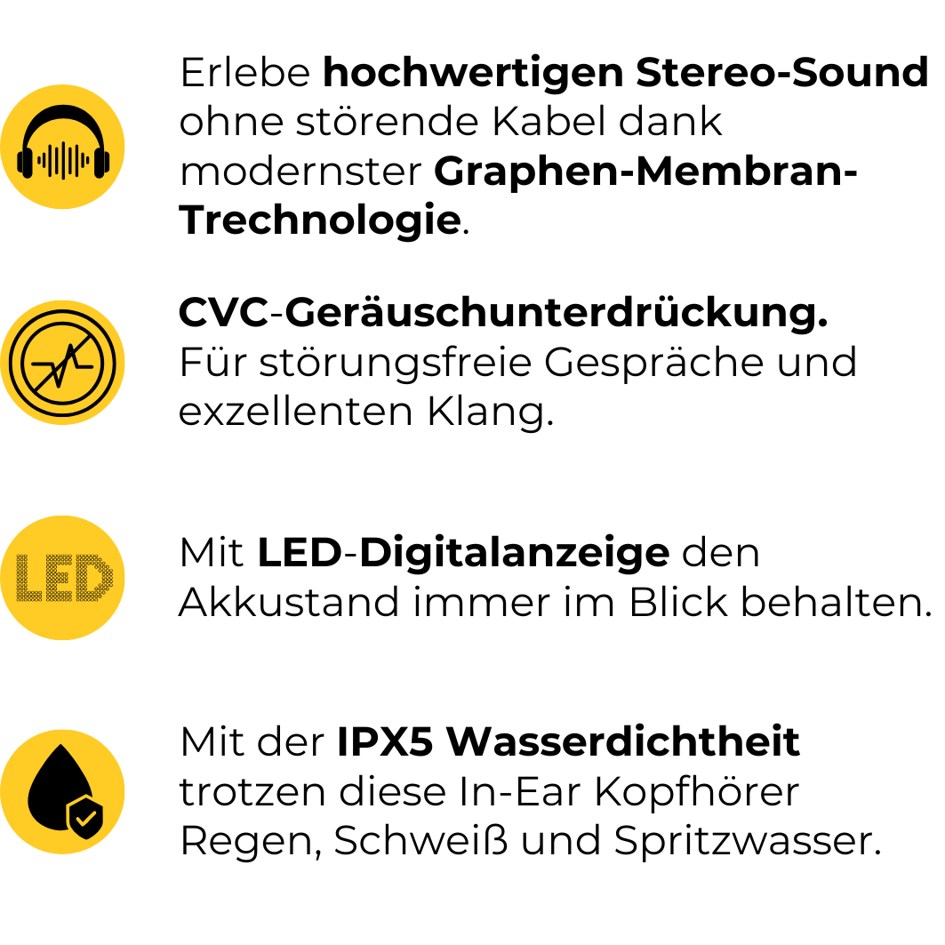 "Ich bin absolut begeistert! Die Kopfhörer verbinden sich blitzschnell, der Sound ist ausgewogen und satt. Besonders mag ich die kompakte Ladebox – ideal für unterwegs. Klare Kaufempfehlung!"